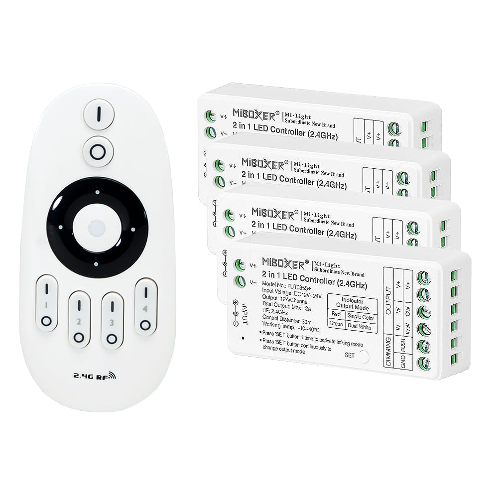 Produkty MiBoxer mogą być dostosowane do różnych rodzajów oświetlenia. Można skorzystać z nich w przypadku diod jednokolorowych, a także wielokolorowych o standardach RGB, RBW czy RGBCCT. To także dobry wybór do lamp ze zmienną temperaturą barwową. Sterownik obsłuży przystosowane żarówki, taśmy LED czy panele naścienne.