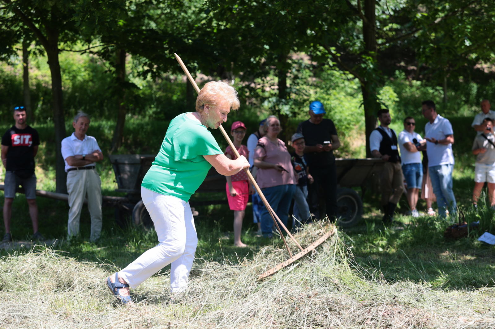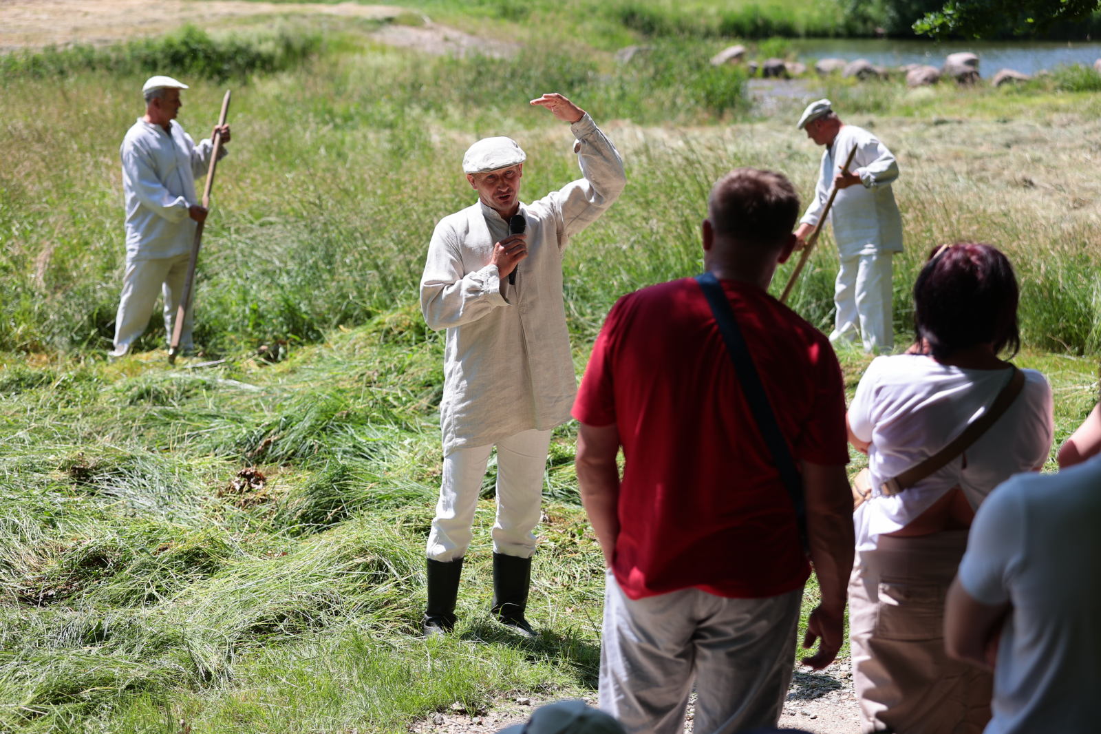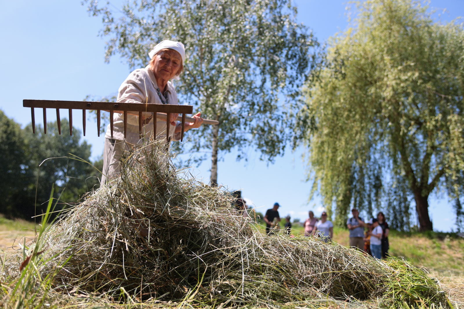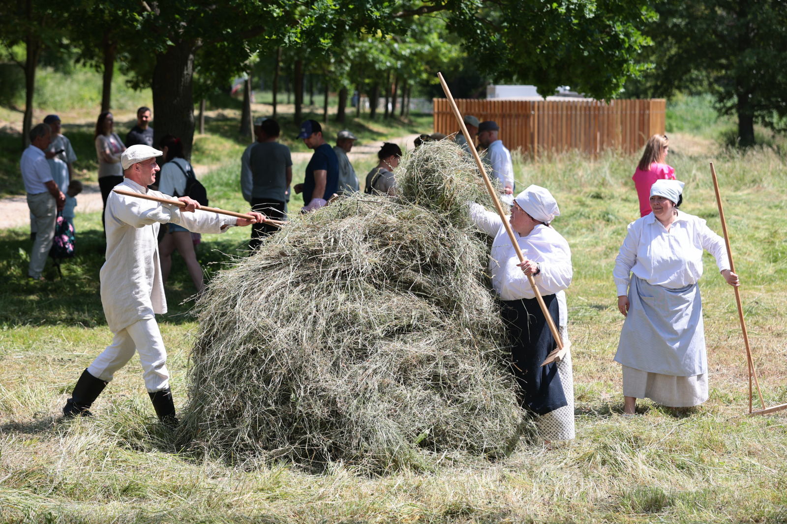 To była prawdziwa lekcja historii na żywo. Wszystko zaczęło się w sektorze Wyżyna Lubelska, gdzie w Zagrodzie z Żukowa zgodnie z tradycją kosa była klepana na specjalnej babce – tak, jak robili to nasi dziadkowie. W samo południe kosiarze ruszyli do pracy w sektorze Powiśle, gdzie razem z wolontariuszami i odwiedzającą publicznością kosili, grabili i przewracali siano, a ostatecznie ułożono je w kopki. Obserwatorzy mogli nie tylko przyglądać się pracy rąk ludzkich, ale również sami poczuć zapach świeżo skoszonej trawy i usłyszeć brzęk narzędzi rolniczych używanych przed laty. Byli też tacy, którzy zapragnęli spróbować własnych sił z kosą czy grabiami w dłoniach.