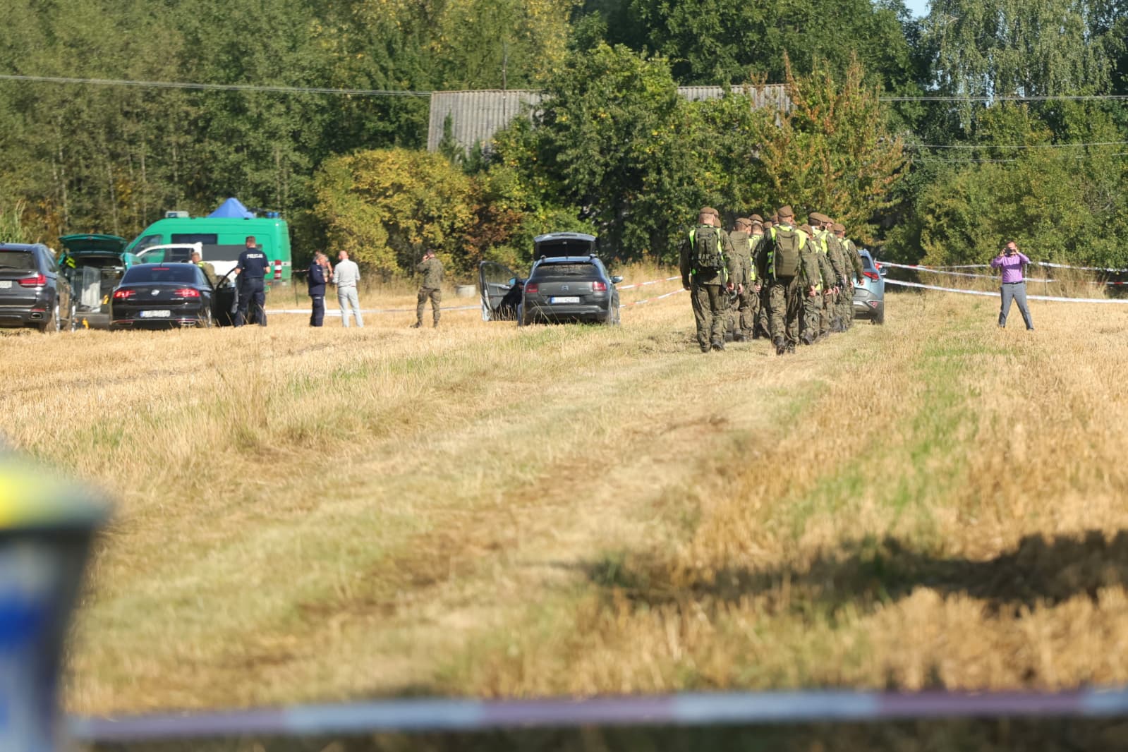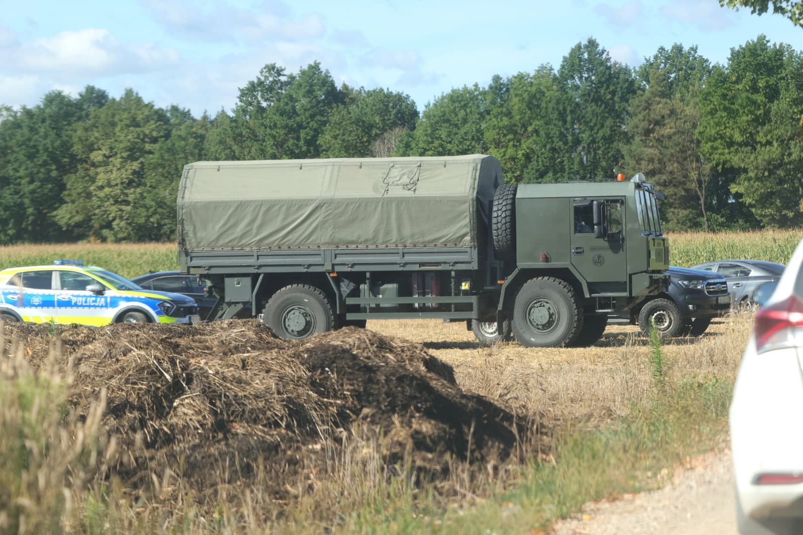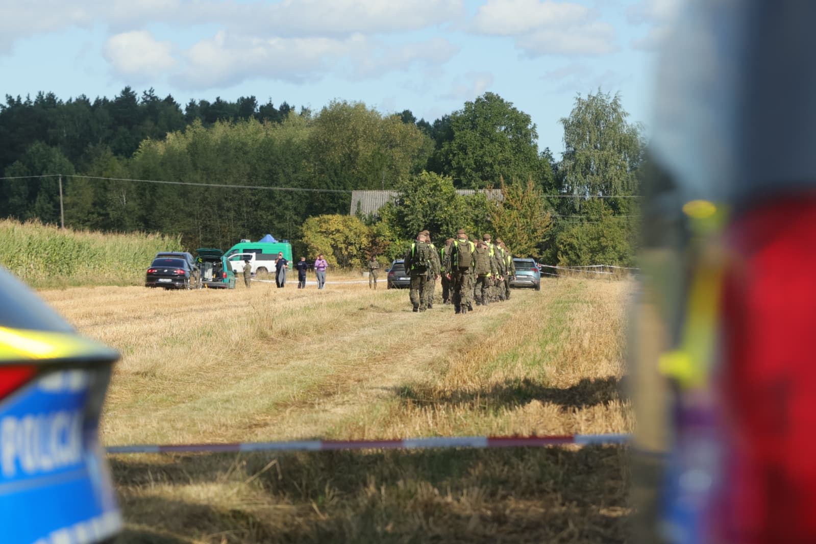 Na miejscu interweniowały policja i służby kryzysowe. Funkcjonariusze odnaleźli nadpalone elementy metalu i plastiku. Według wstępnych ustaleń Dowództwa Operacyjnego Rodzajów Sił Zbrojnych mogły to być fragmenty starego silnika ze śmigłem, prawdopodobnie rosyjskiego drona. Pole w miejscu zdarzenia wypaliło się na powierzchni około 200–300 mkw., choć – jak podkreślają służby – nie powstał lej po uderzeniu.