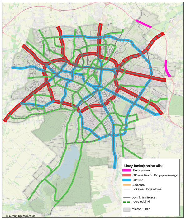 Nowe trasy planowane są m.in. w rejonie ul. Turystycznej, jako przedłużenie ul. Dekutowskiego od Drogi Męczenników Majdanka do ul. Abramowickiej, a także jako nowe połączenia między Abramowicką a węzłem Lublin-Węglin, czy połączenie ul. Grygowej z Do Dysa. W planach pojawiają się również przedłużenia takich ulic jak Diamentowa, Zana czy Stadionowa oraz nowe łączniki drogowe w różnych częściach miasta.