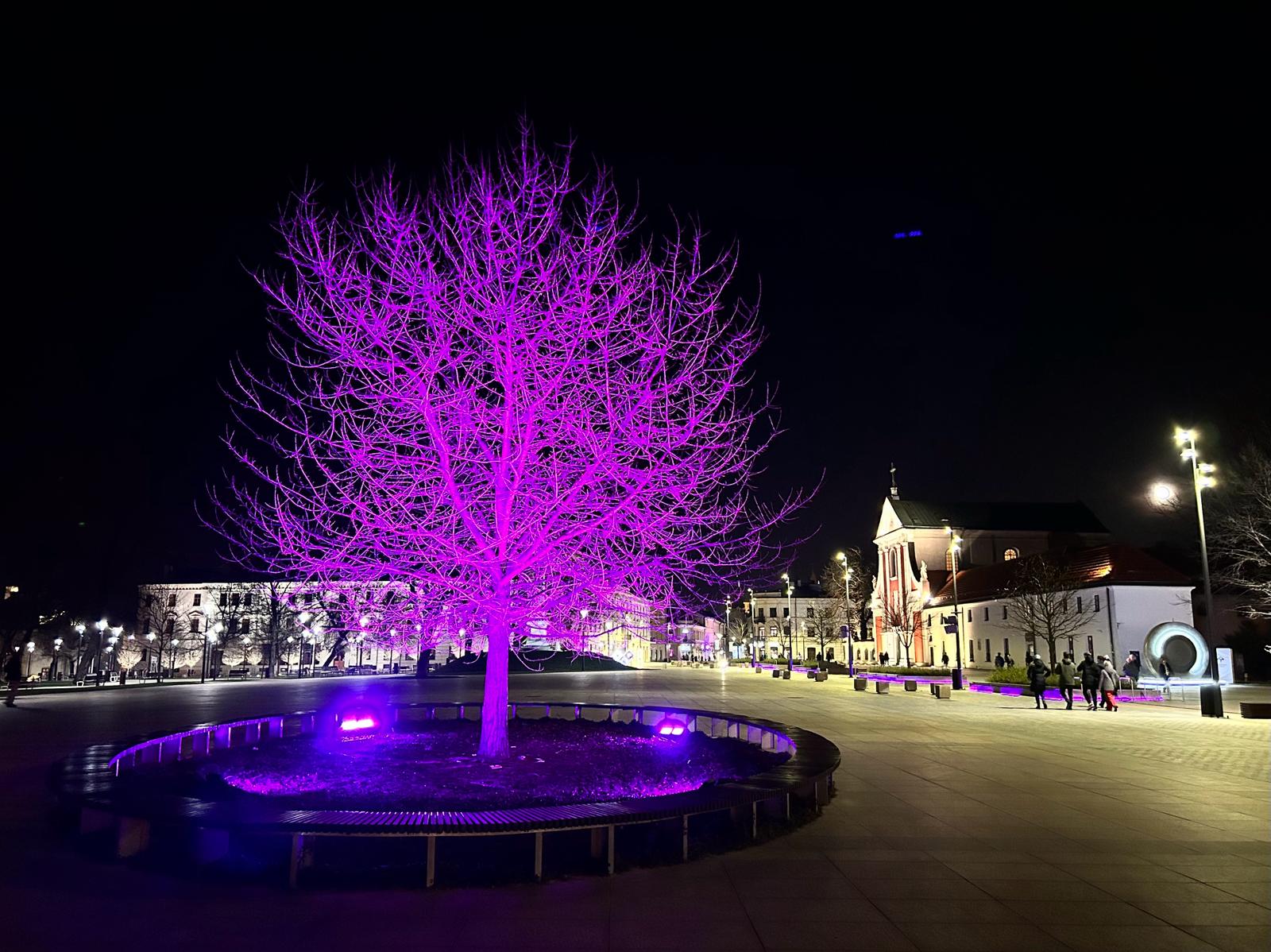 W niedzielny wieczór, od godziny 16:40 aż do północy, iluminacja Placu Litewskiego zmieni kolor na różowy – barwę kojarzoną z profilaktyką nowotworów kobiecych. Różowe światło obejmie m.in. podświetlenie topoli czarnej – „Baobab”, donice z kasztanowcami wzdłuż budynku Poczty Głównej oraz fontannę multimedialną.