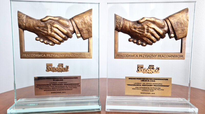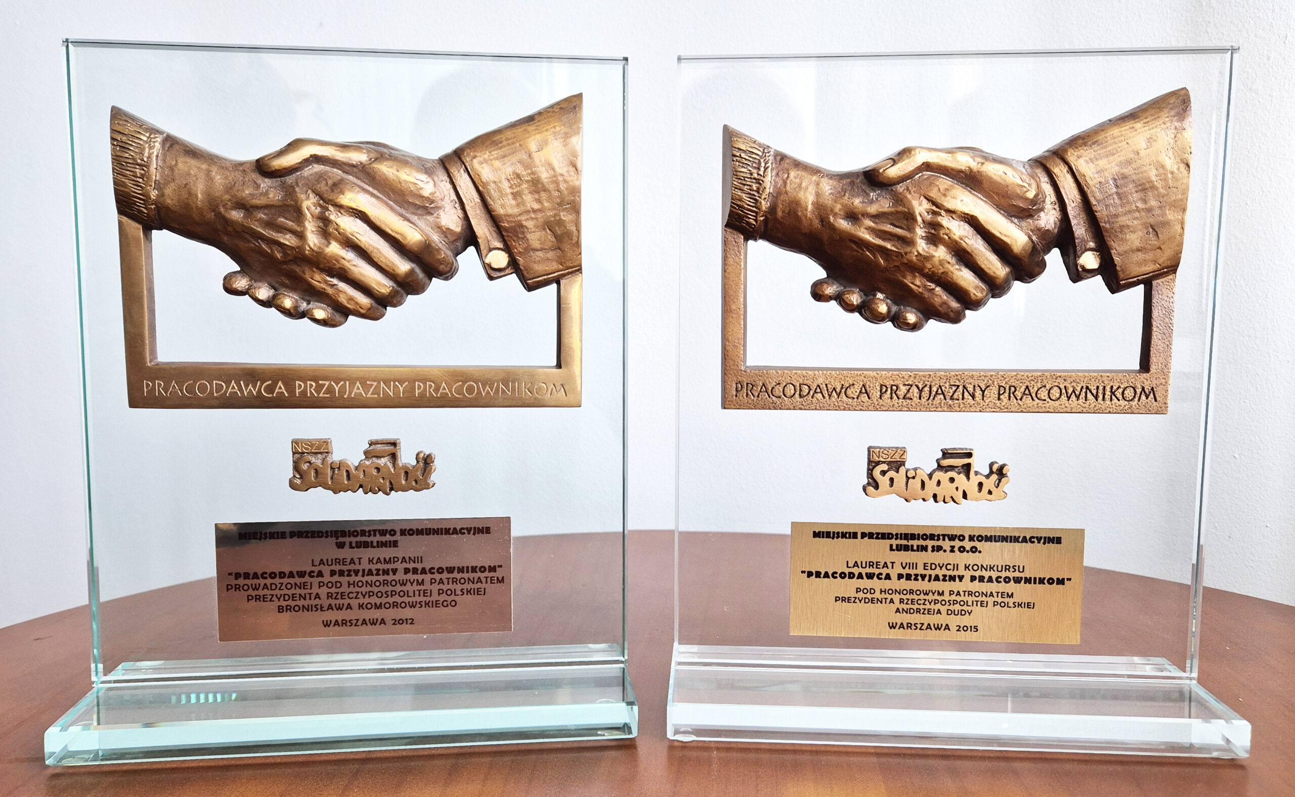 Miejskie Przedsiębiorstwo Komunikacyjne w Lublinie po raz kolejny zostało uhonorowane certyfikatem „Pracodawca Przyjazny Pracownikom”. Wyróżnienie przyznawane jest przez NSZZ „Solidarność” pod honorowym patronatem Prezydenta RP.