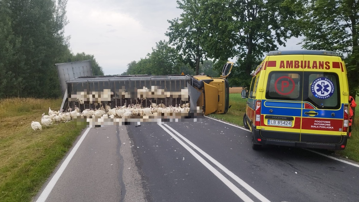 Ciężarówką kierował 40-letni mężczyzna, również obywatel Ukrainy. Jak informują funkcjonariusze, mężczyzna był trzeźwy – potwierdziło to badanie alkomatem przeprowadzone tuż po zdarzeniu. Pojazd, którym kierował, przewrócił się na bok, a w naczepie znajdował się żywy drób. Na miejscu konieczne było zabezpieczenie inwentarza oraz uprzątnięcie miejsca wypadku.